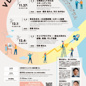 ALL 小中高 大学生 一般 学内限定 2025/09/29 小中高 バリューデザイン教育センターのロゴが出来ました デザインについて VDECが目的とする「社会価値創造/アントレプレナー教育のリソ ・・・ 2025/08/27 小中高 仙台市DATERISE !2025でBruno教授が講演を行いました(2025/8/23) 8月23日(土)、仙台市主催による 「DATERISE!2025」 が開催されま ・・・ 2025/08/27 仙台青陵中等教育学校・科学部が「バリューデザイン未来共創賞」を受賞(7/28表彰) 7月20日(日)、NPO法人natural science主催の「サイエンスデ ・・・ MORE → 2025/09/29 小中高 バリューデザイン教育センターのロゴが出来ました デザインについて VDECが目的とする「社会価値創造/アントレプレナー教育のリソ ・・・ 2025/08/27 小中高 仙台市DATERISE !2025でBruno教授が講演を行いました(2025/8/23) 8月23日(土)、仙台市主催による 「DATERISE!2025」 が開催されま ・・・ 小中高MORE → 2025/03/27 大学生学内限定 国際戦略リーダー講座参加者募集 このプログラムは、工学研究科・工学部 工学教育院が主催する、新しい価値を創造し、 ・・・ 2025/03/27 大学生学内限定 ライフデザインとビジネス・イノベーションを米国で学ぶ——東北大学「未来デザイン・I&Eコース」が行われました 東北大学の入学前グローバル学習プログラム(High School Bridgin ・・・ 2025/03/27 大学生学内限定 バリューデザイン教育センター ホームページを開設しました このたび、バリューデザイン教育センターのホームページを開設いたしました。 本 ・・・ 大学生MORE → データがありません。 一般MORE → 2025/03/27 大学生学内限定 国際戦略リーダー講座参加者募集 このプログラムは、工学研究科・工学部 工学教育院が主催する、新しい価値を創造し、 ・・・ 2025/03/27 大学生学内限定 ライフデザインとビジネス・イノベーションを米国で学ぶ——東北大学「未来デザイン・I&Eコース」が行われました 東北大学の入学前グローバル学習プログラム(High School Bridgin ・・・ 2025/03/27 大学生学内限定 バリューデザイン教育センター ホームページを開設しました このたび、バリューデザイン教育センターのホームページを開設いたしました。 本 ・・・ 学内限定MORE → ALL 小中高 大学生 一般 学内限定 [開催期間]2025/12/13~2025/12/14 受付終了 対面 大学生 TOKYO GLOBAL INNOVATION CHALLENGE(12/13&14@中央大学) ~TOKYO GLOBAL INNOVATION CHALLENGE~ ・オール ・・・ [開催期間]2025/05/26~2025/05/26 対面 大学生学内限定 Bruno教授による講義を実施(2025/5/26) 未来を創るキャリアと起業 2025年5月、川内キャンパスにて開催された「未来デザ ・・・ [開催期間]2025/05/19~2025/05/26 受付終了 対面 大学生 キャリア・アクセラレーション ミニワークショップ開催(2025 5/26開催) プログラム概要 キャリアデザインのプロによる講義とワークショップとを通じて、自分 ・・・ [開催期間]2025/04/08~2025/06/09 受付終了 対面 大学生一般 Falling Walls Lab Sendai (FWLS) 2025/8/5開催(申込締切6/9) アイデアを発表してベルリンへの旅を勝ち取ろう! Falling Walls La ・・・ [開催期間]2025/04/08~2025/04/22 受付終了 対面 大学生学内限定 第2回キャリア就職フェア2025/4/23-24開催 キャリア⽀援センター主催「第2回キャリア就職フェア」を開催します。東北⼤⽣を積極 ・・・ MORE → [開催期間]2025/02/01~ 対面 小中高一般 第12回高校生ビジネスプラン・グランプリ 東北地区発表会2024/2/1開催 日本政策金融公庫主催の「ビジネスプラン・グランプリ 東北地区発表会」が、東北大学 ・・・ [開催期間]2025/01/25~ 対面 小中高一般 東北地区サイエンスコミュニティ研究校発表会2024/1/25開催 東北地区サイエンスコミュニティ研究発表会が主管する東北地区SSH指定校課題研究発 ・・・ 小中高MORE → [開催期間]2025/12/13~2025/12/14 受付終了 対面 大学生 TOKYO GLOBAL INNOVATION CHALLENGE(12/13&14@中央大学) ~TOKYO GLOBAL INNOVATION CHALLENGE~ ・オール ・・・ [開催期間]2025/05/26~2025/05/26 対面 大学生学内限定 Bruno教授による講義を実施(2025/5/26) 未来を創るキャリアと起業 2025年5月、川内キャンパスにて開催された「未来デザ ・・・ [開催期間]2025/05/19~2025/05/26 受付終了 対面 大学生 キャリア・アクセラレーション ミニワークショップ開催(2025 5/26開催) プログラム概要 キャリアデザインのプロによる講義とワークショップとを通じて、自分 ・・・ [開催期間]2025/04/08~2025/06/09 受付終了 対面 大学生一般 Falling Walls Lab Sendai (FWLS) 2025/8/5開催(申込締切6/9) アイデアを発表してベルリンへの旅を勝ち取ろう! Falling Walls La ・・・ [開催期間]2025/04/08~2025/04/22 受付終了 対面 大学生学内限定 第2回キャリア就職フェア2025/4/23-24開催 キャリア⽀援センター主催「第2回キャリア就職フェア」を開催します。東北⼤⽣を積極 ・・・ 大学生MORE → [開催期間]2025/04/08~2025/06/09 受付終了 対面 大学生一般 Falling Walls Lab Sendai (FWLS) 2025/8/5開催(申込締切6/9) アイデアを発表してベルリンへの旅を勝ち取ろう! Falling Walls La ・・・ [開催期間]2025/02/01~ 対面 小中高一般 第12回高校生ビジネスプラン・グランプリ 東北地区発表会2024/2/1開催 日本政策金